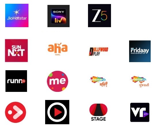 Amazon Prime, Jio-Hotstar, Sun-Nxt, Sony-Liv, Z5 + 10 OTTs